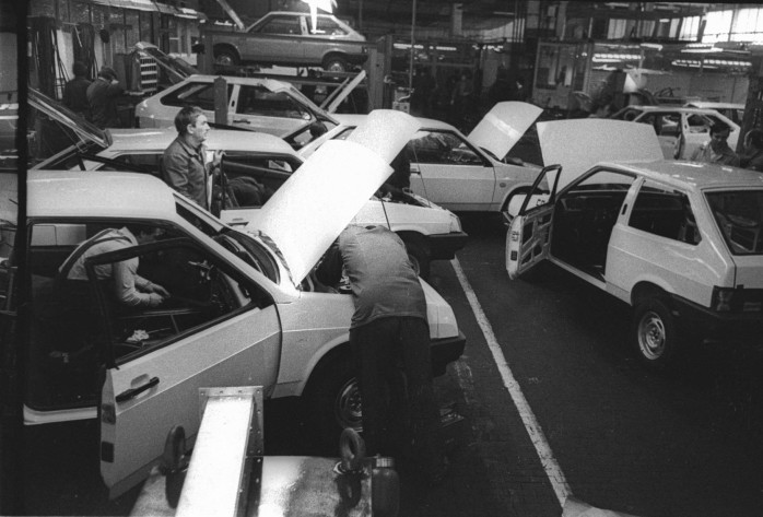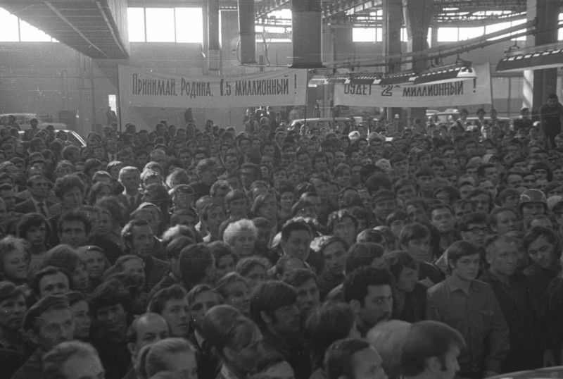 When we were working in Tolyatti, we got a scanned archive of AvtoVAZ. It was even not quite archive, just a large number of photos without captions and chronology. A plant under construction, demonstrations and concerts, a man and a conveyor, life and dream. The big story, which became a part of the set of biographies.